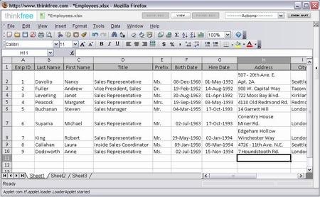 And the same document in Excel 2007 : He also shows that ThinkFree's rich web client runs using the Java Plug-in 1.6.0_05 which uses JRE version 1.6.0_05 Java HotSpot(TM) Client VM. ThinkFree's server is a Linux server running Apache:
